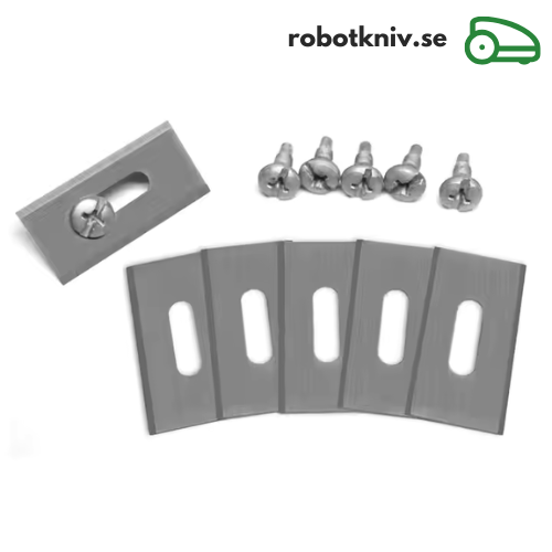 Knivsats med 30 st turn-around/självvändande knivar/knivblad och skruvar av högkvalitativt rostfritt stål till din Gardena robotgräsklippare. Dessa självvändande robotgräsklipparknivar har en rörlig knivdesign vilket gör att knivarna kan vända sig och knivbladets alla sidor används vid klippning. Bidrar till en längre livslängd och en grönare gräsmatta!